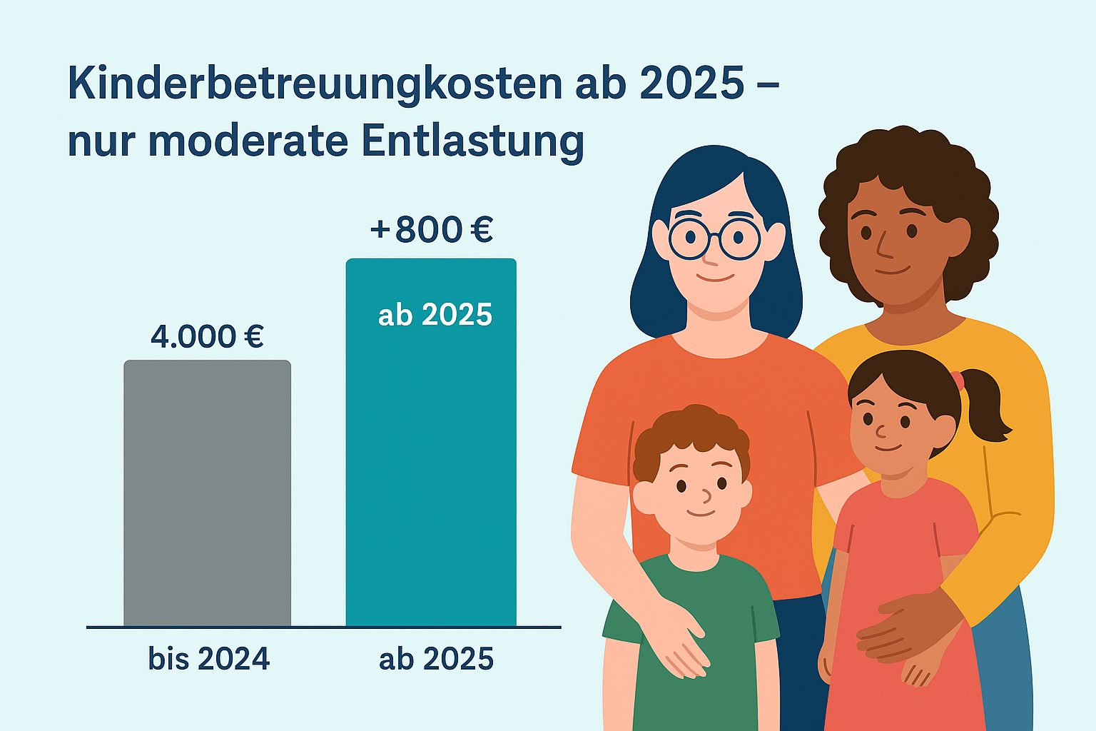 Es steigt der maximale steuerliche Abzug um 800 € pro Kind und Jahr. Entscheidend ist jedoch, wie hoch die tatsächliche Steuerersparnis ausfällt – denn abziehbar ist nur der Betrag, nicht die Steuer selbst.